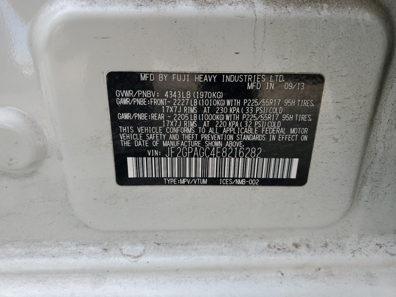 - ВИН: JF2GPAGC4E8******