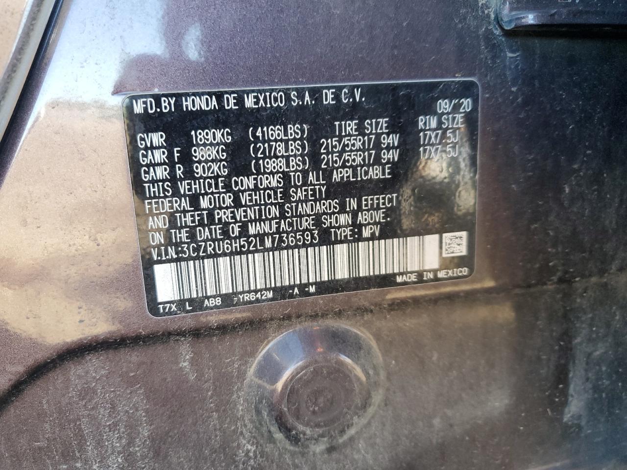 - ВИН: 3CZRU6H52LM******