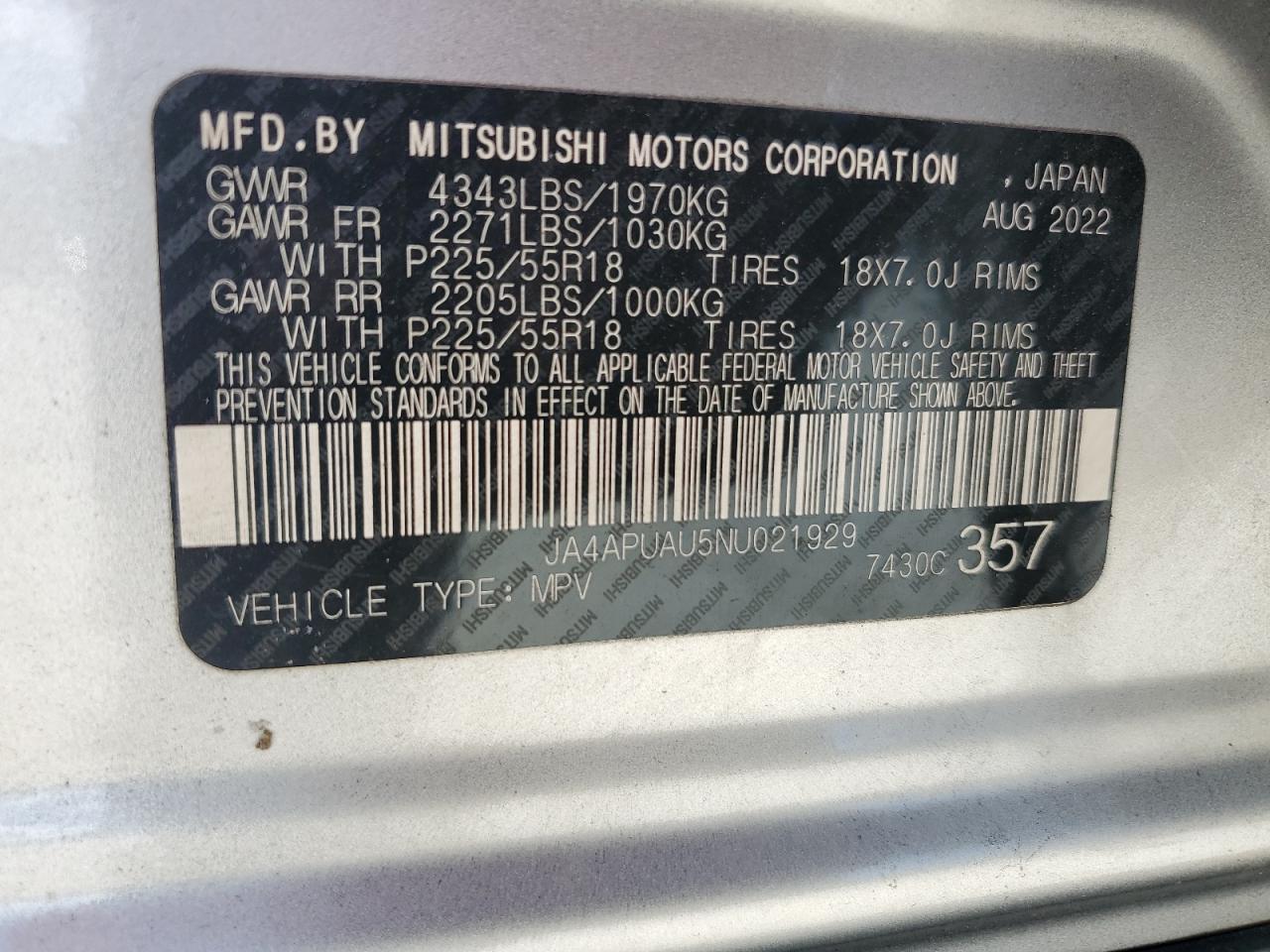 - ВИН: JA4APUAU5NU******