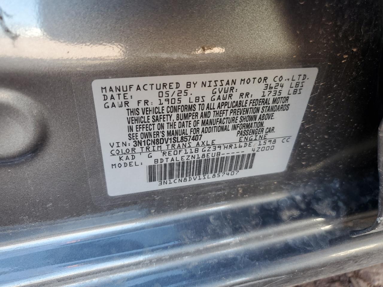 - ВИН: 3N1CN8DV1SL******