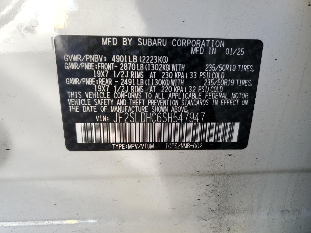 - ВИН: JF2SLDHC6SH******