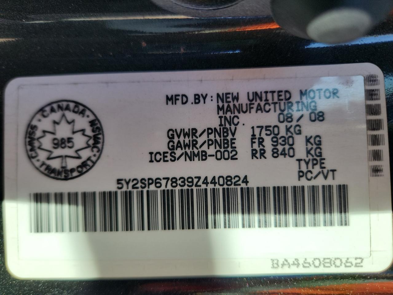 - ВИН: 5Y2SP67839Z******