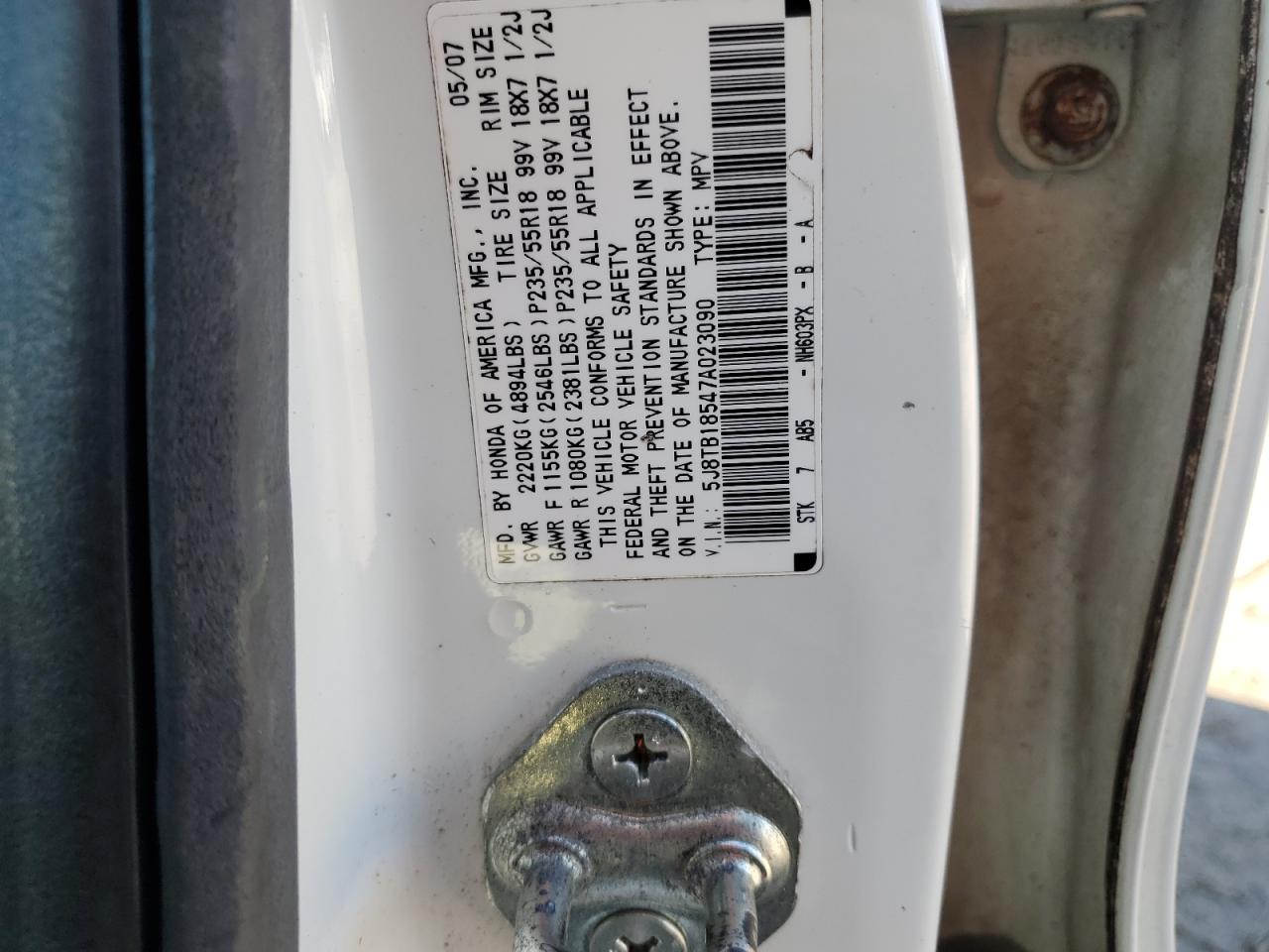 - ВИН: 5J8TB18547A******