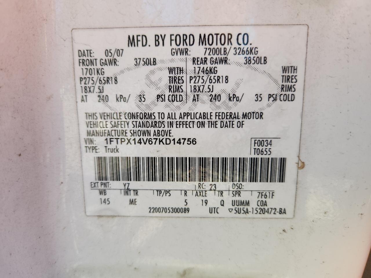 - ВИН: 1FTPX14V67K******