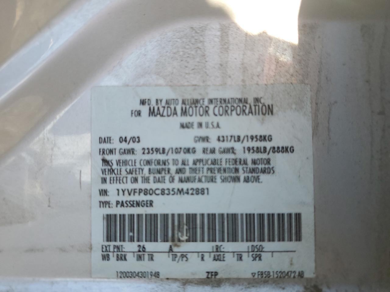 2003 MAZDA 6 I из США
