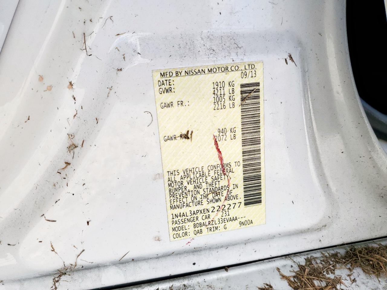 - ВИН: 1N4AL3APXEN******