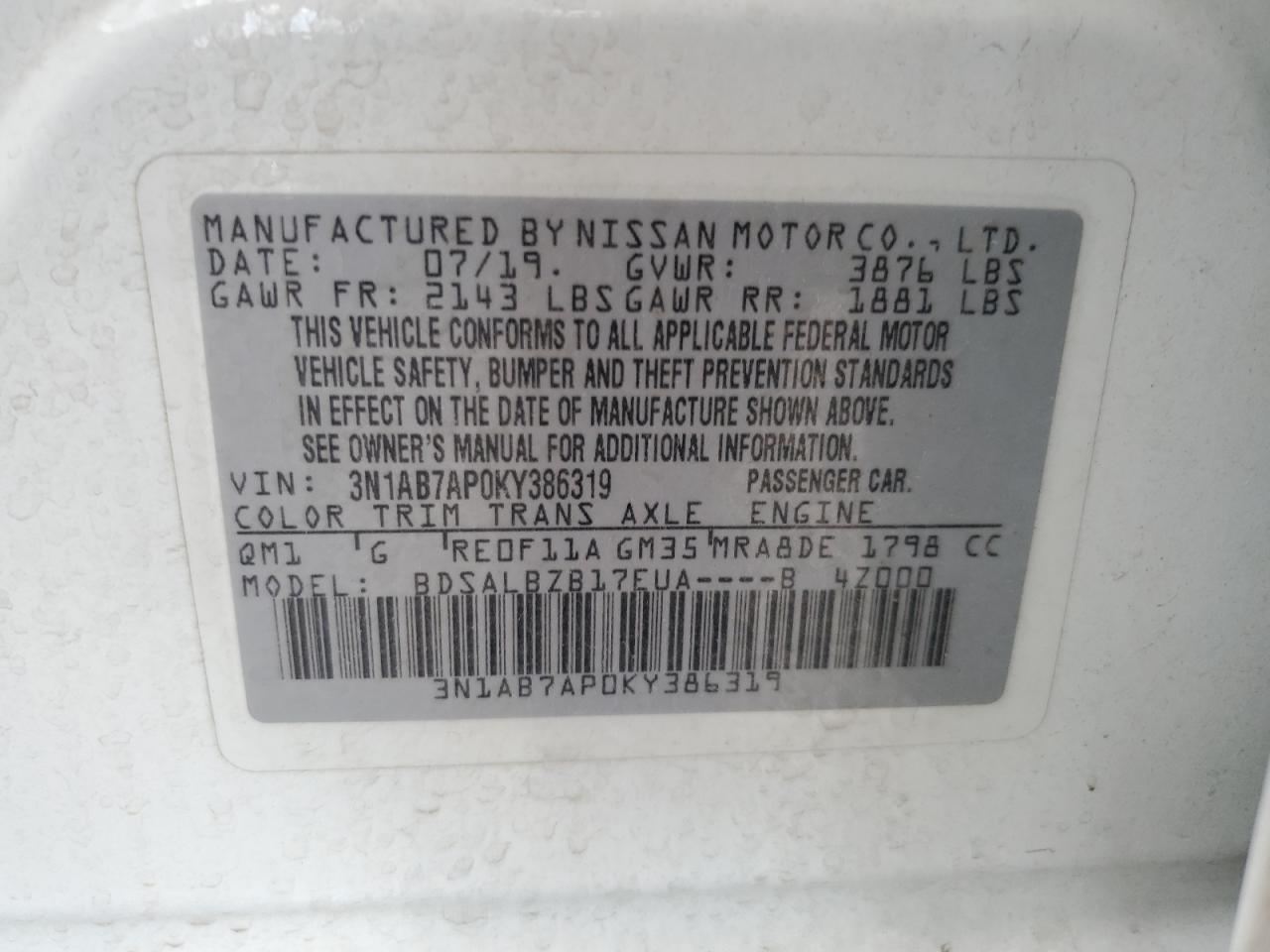 - ВИН: 3N1AB7AP0KY******