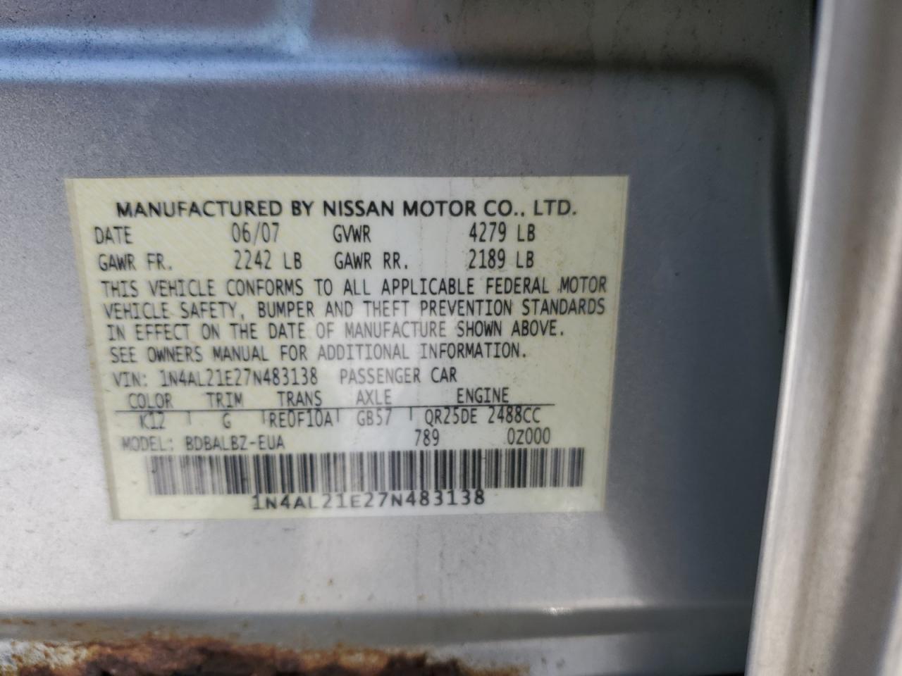 2007 NISSAN ALTIMA 2.5 из США