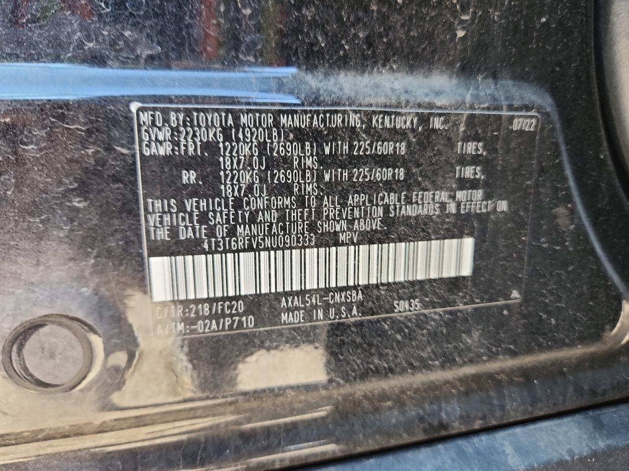 - ВИН: 4T3T6RFV5NU******