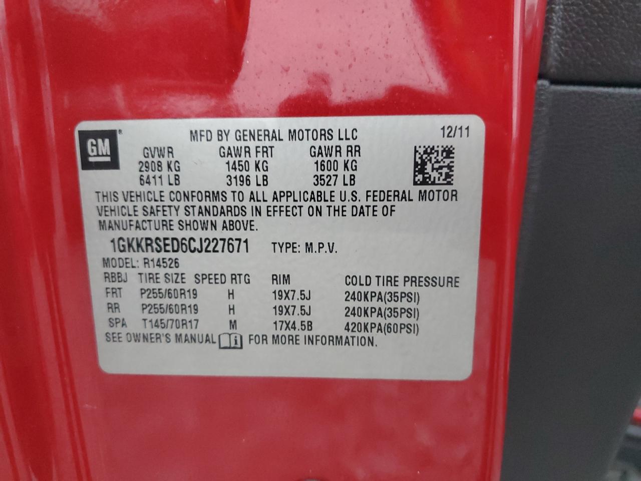 - ВИН: 1GKKRSED6CJ******