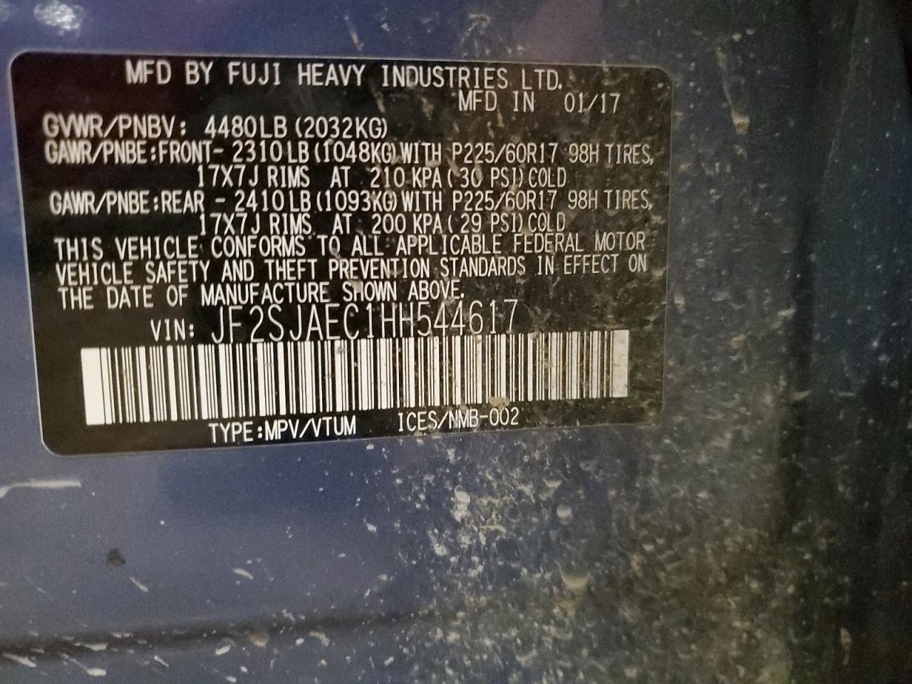 - ВИН: JF2SJAEC1HH******