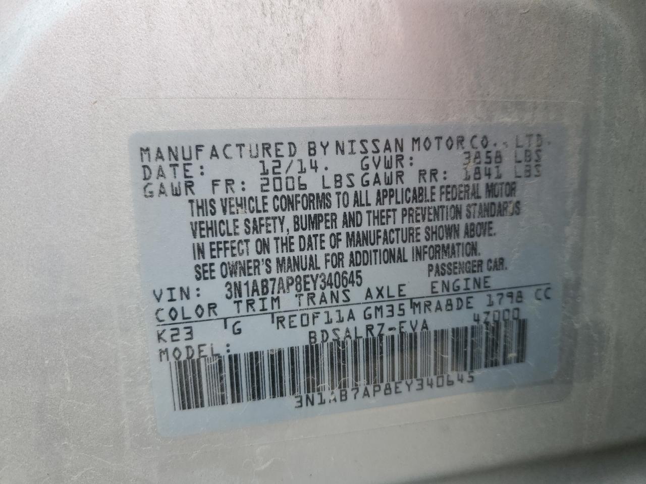 - ВИН: 3N1AB7AP8EY******