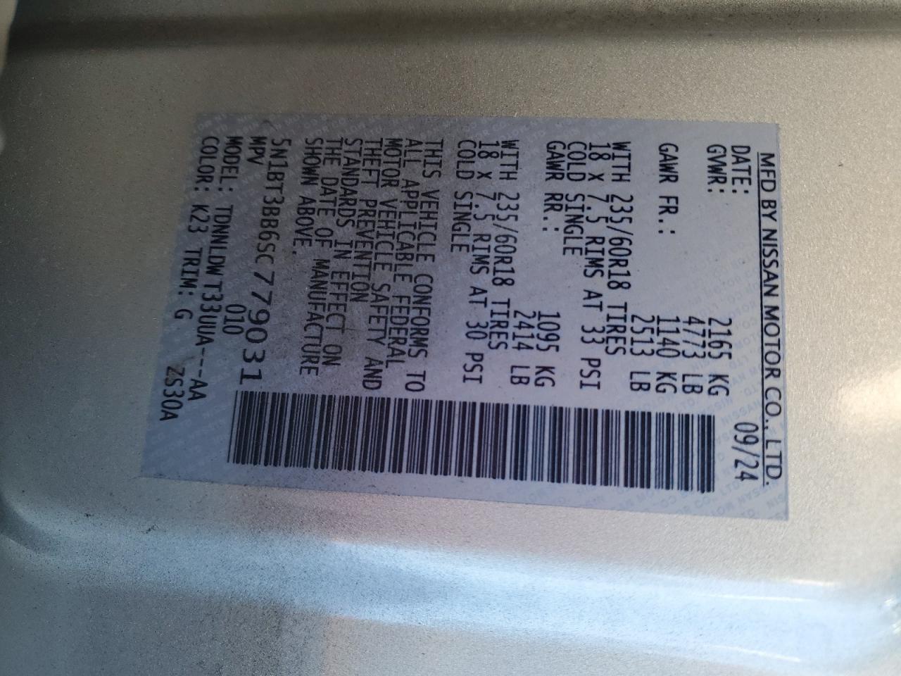 - ВИН: 5N1BT3BB6SC******