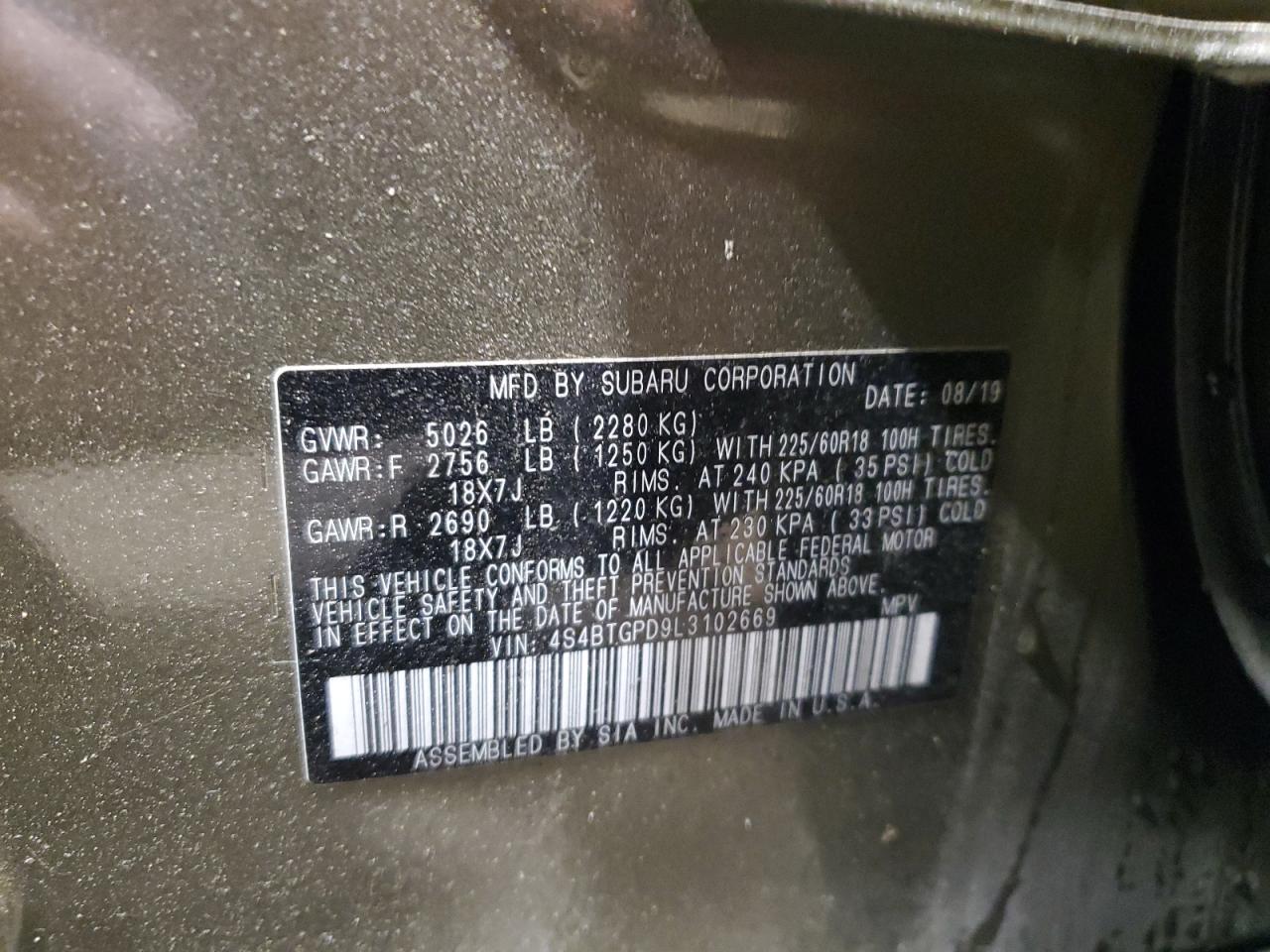 - ВИН: 4S4BTGPD9L3******