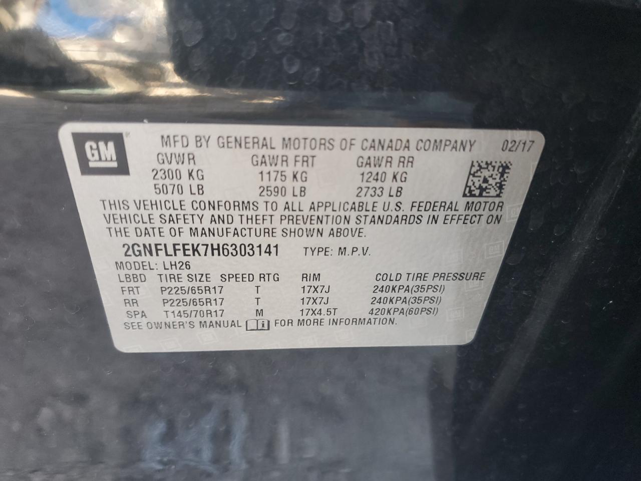 - ВИН: 2GNFLFEK7H6******