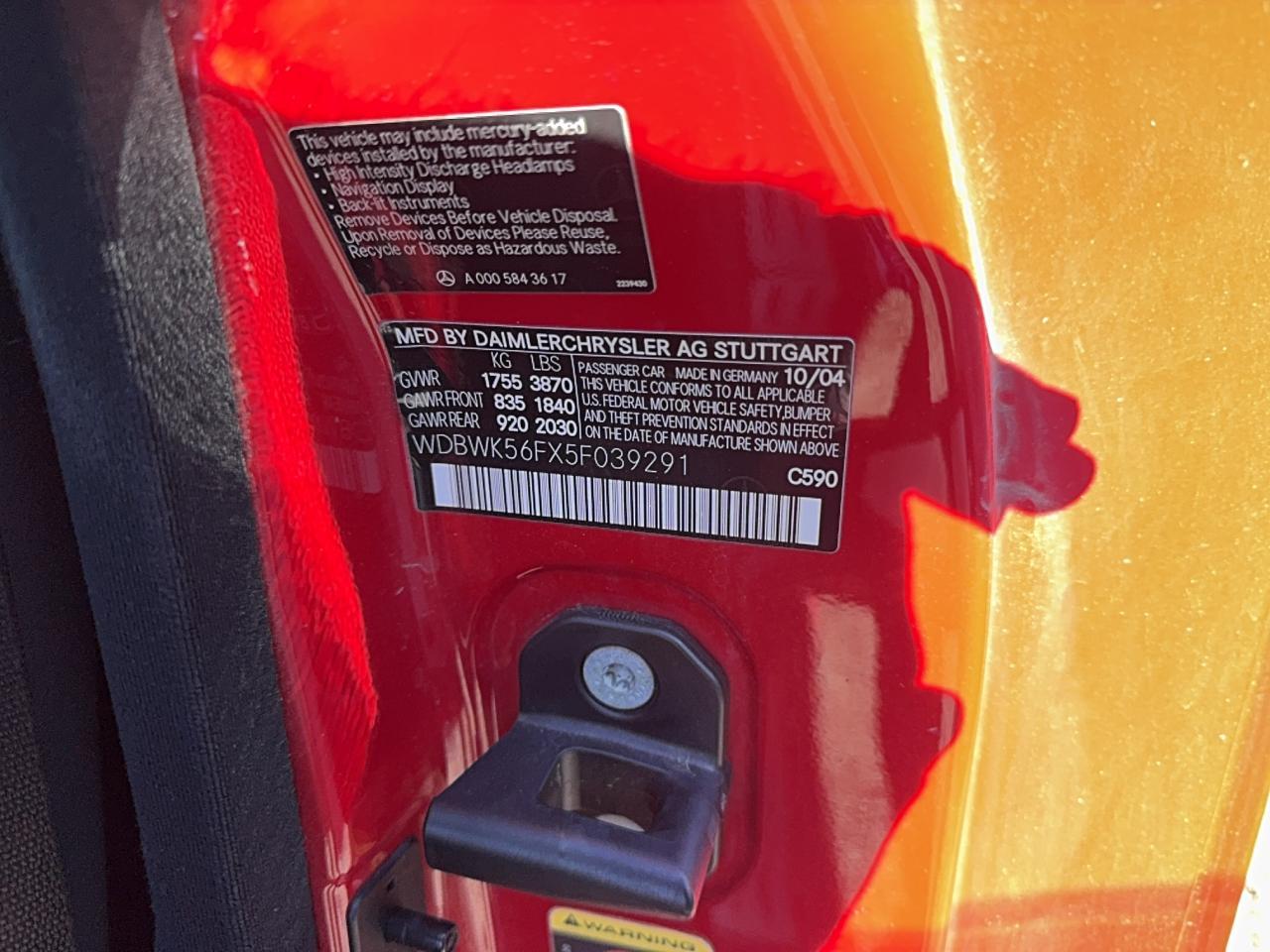 - ВИН: WDBWK56FX5F******