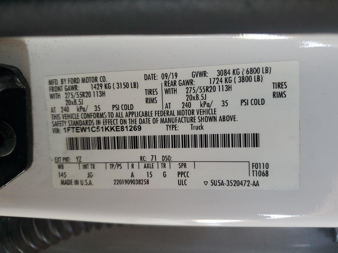- ВИН: 1FTEW1C51KK******