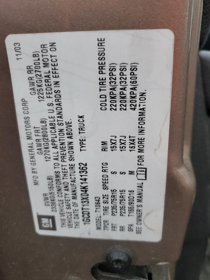 - ВИН: 1GCDT13X04K******
