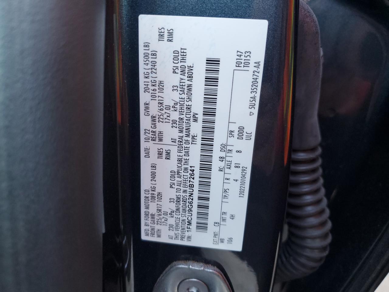 - ВИН: 1FMCU9G62NU******