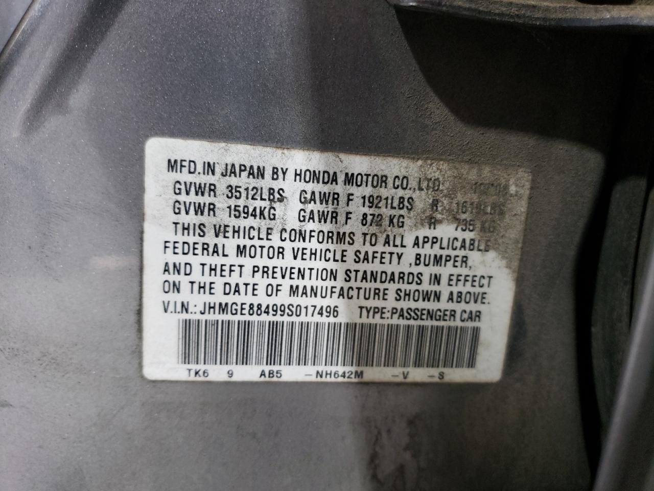 - ВИН: JHMGE88499S******