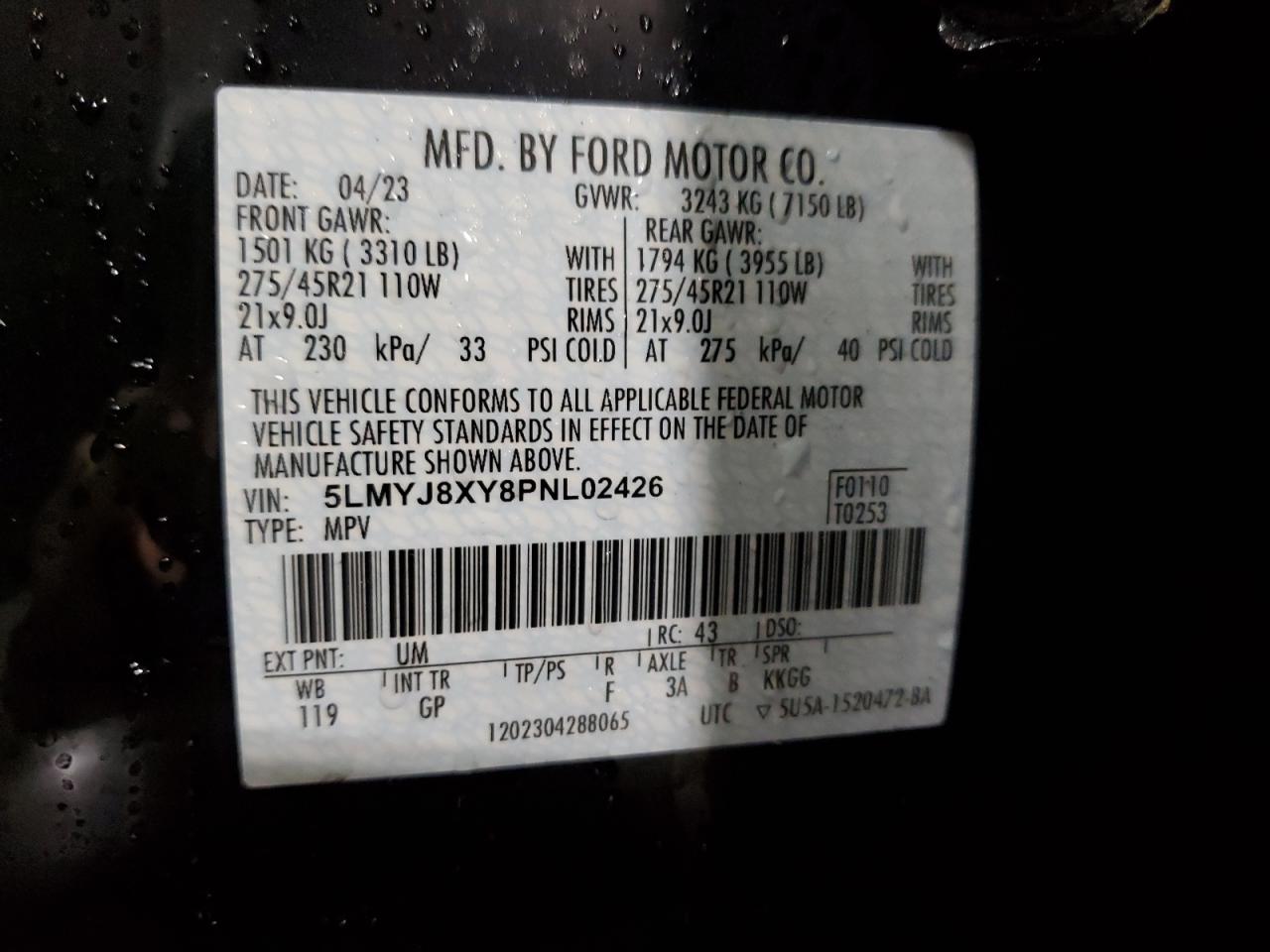 - ВИН: 5LMYJ8XY8PN******