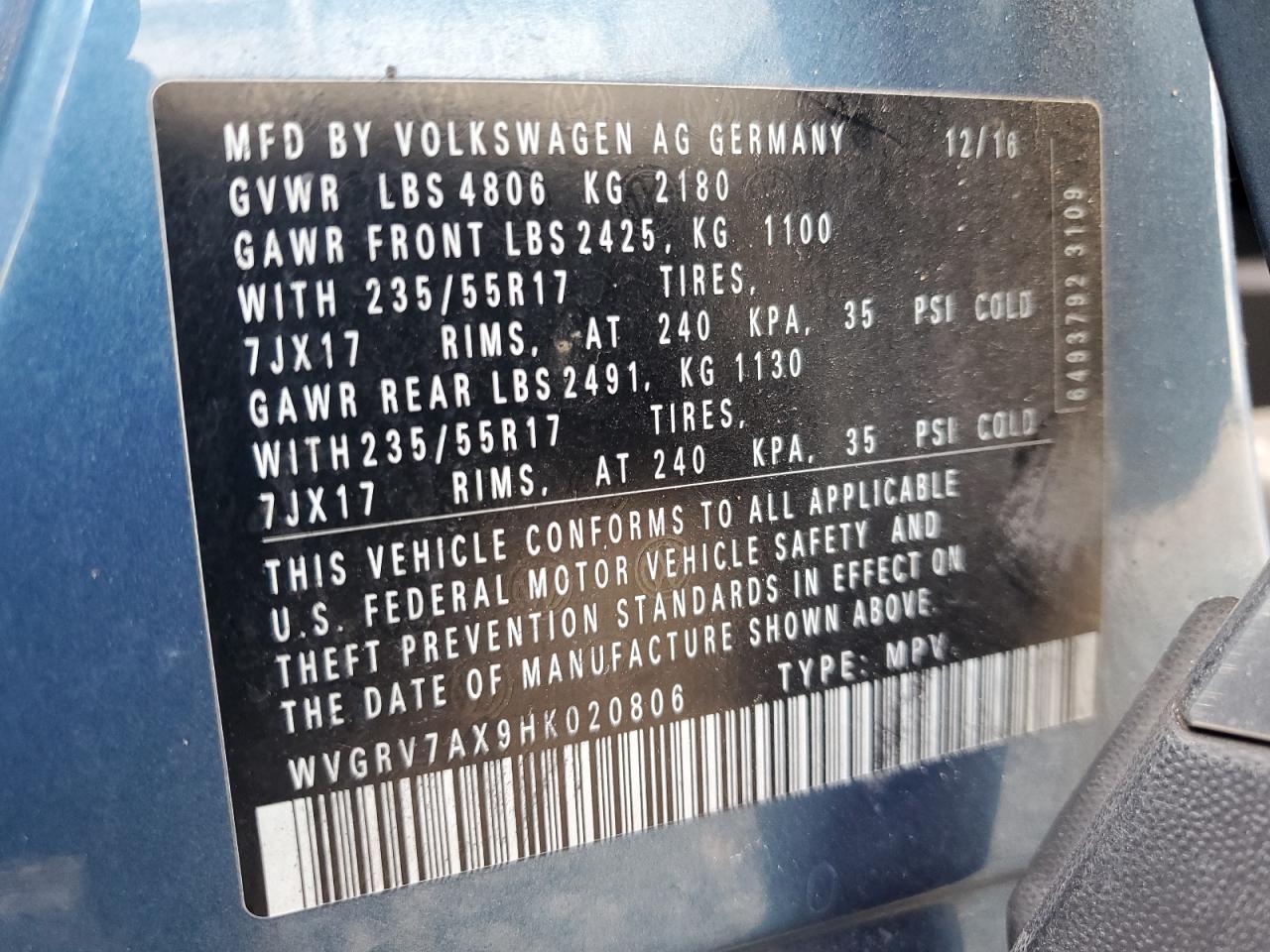 - ВИН: WVGRV7AX9HK******