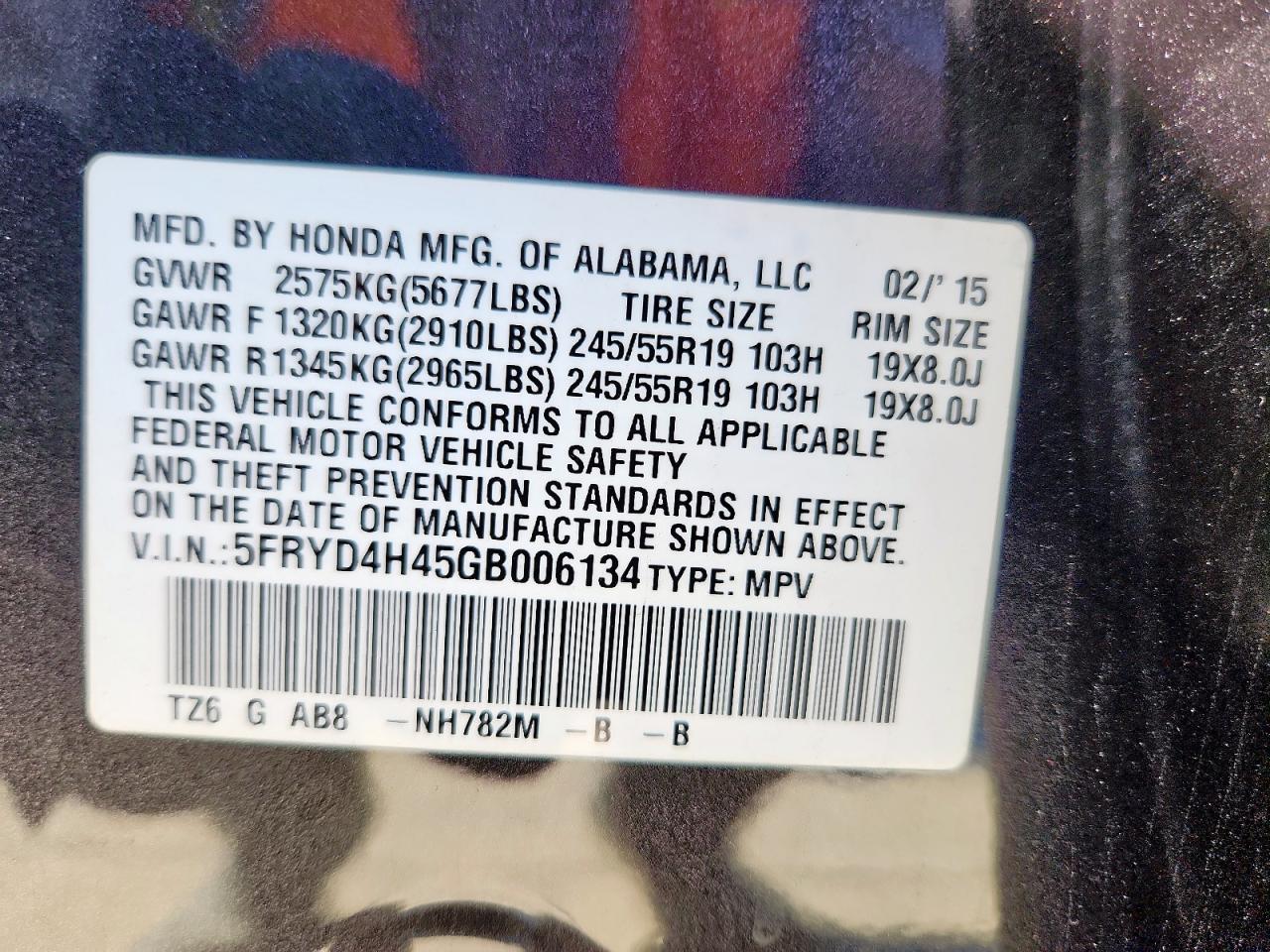 - ВИН: 5FRYD4H45GB******