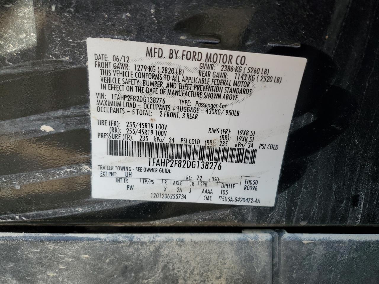 - ВИН: 1FAHP2F82DG******