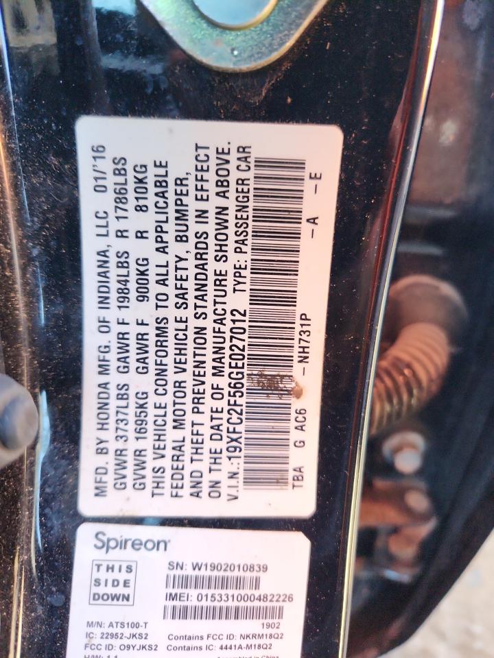 - ВИН: 19XFC2F56GE******