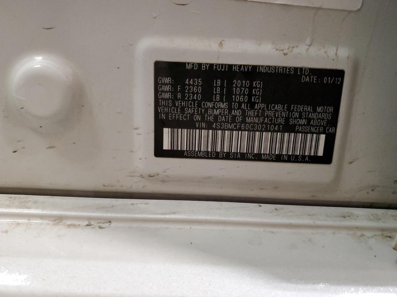 - ВИН: 4S3BMCF60C3******