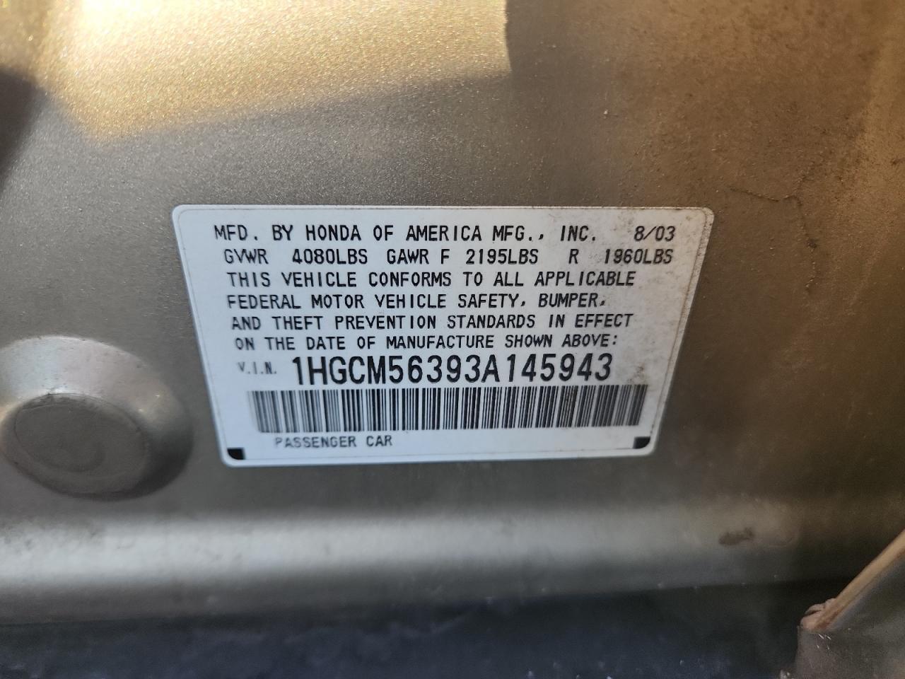- ВИН: 1HGCM56393A******