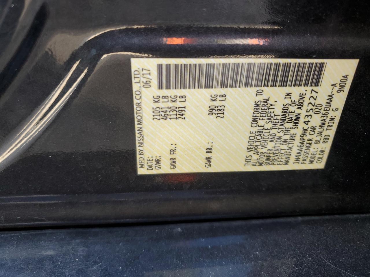 - ВИН: 1N4AA6AP9HC******