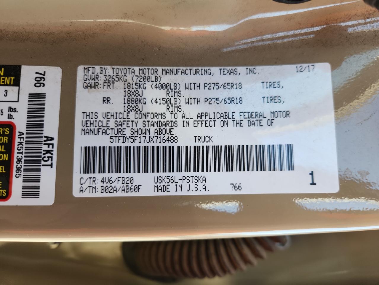 - ВИН: 5TFDY5F17JX******
