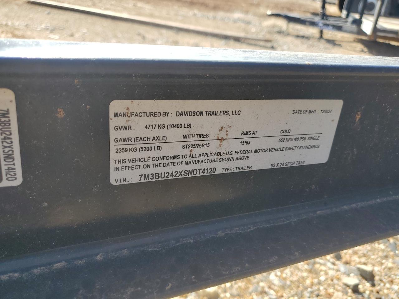 2025 DAVIDSON 83 X 24 SFCH TA52 EQUIPMENT TRAILER из США