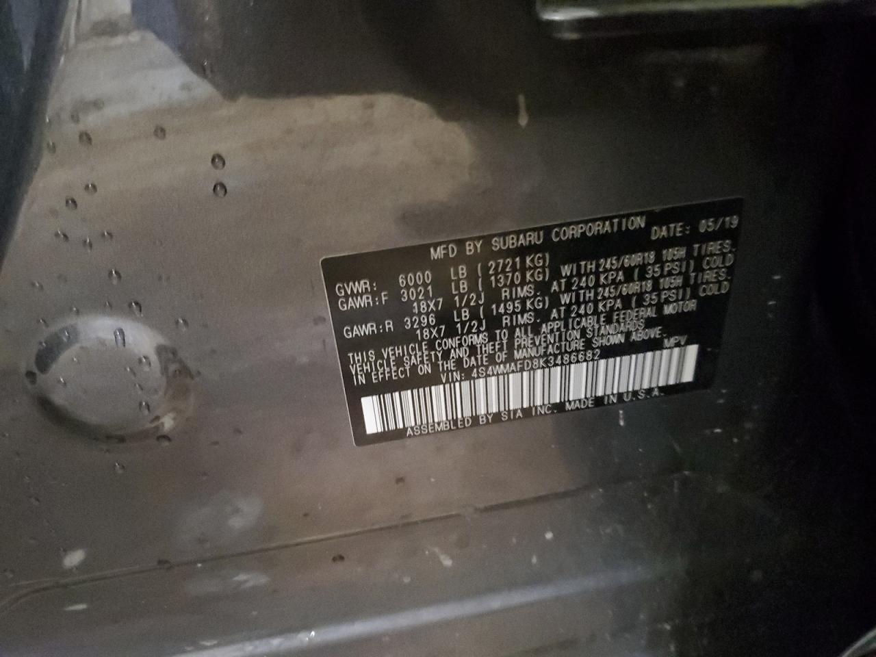 2019 SUBARU ASCENT PREMIUM из США