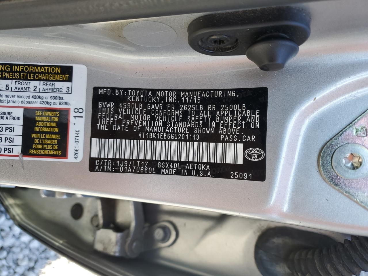 - ВИН: 4T1BK1EB6GU******