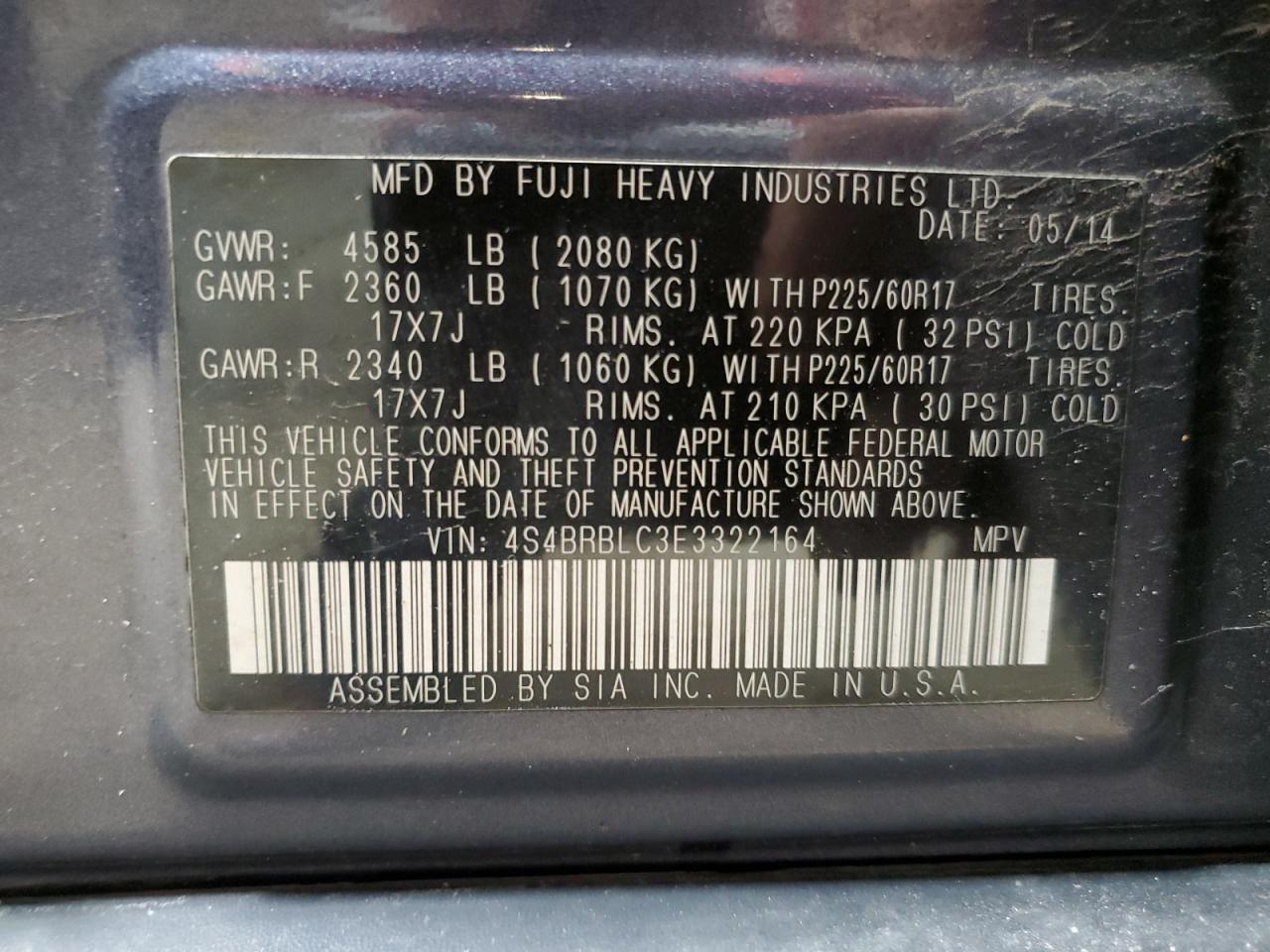 - ВИН: 4S4BRBLC3E3******