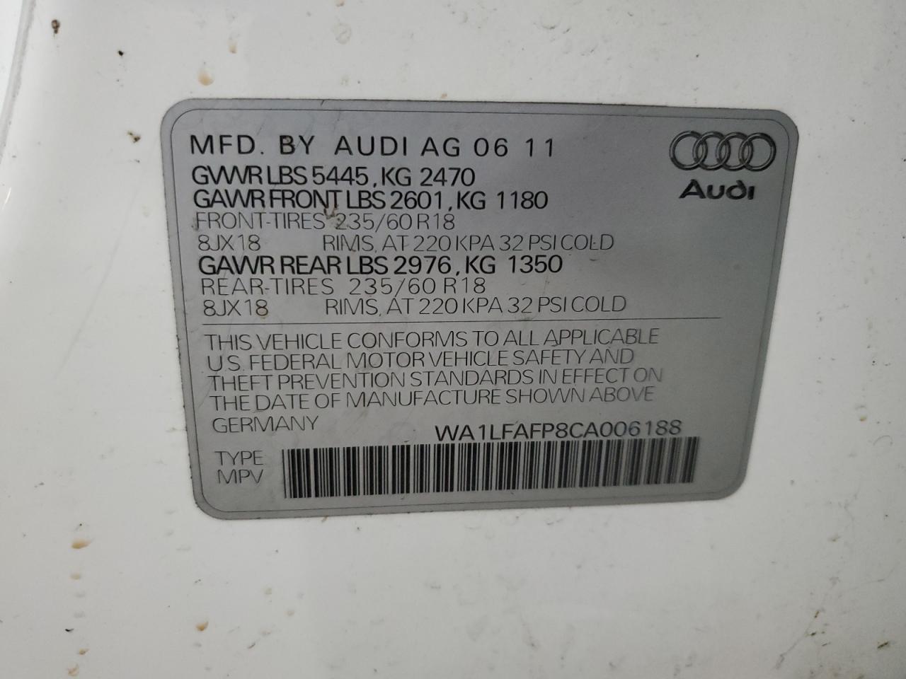 - ВИН: WA1LFAFP8CA******