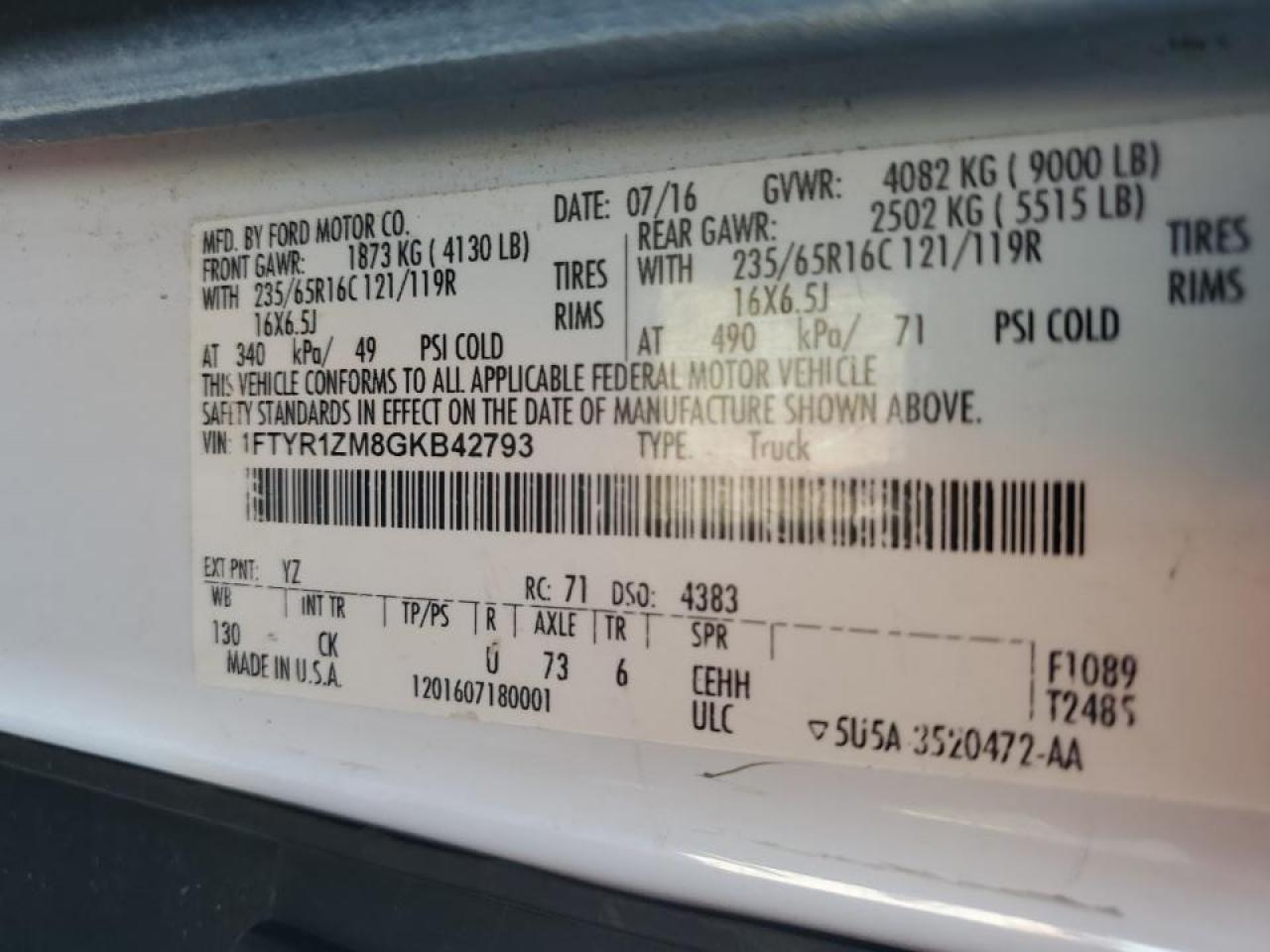 - ВИН: 1FTYR1ZM8GK******