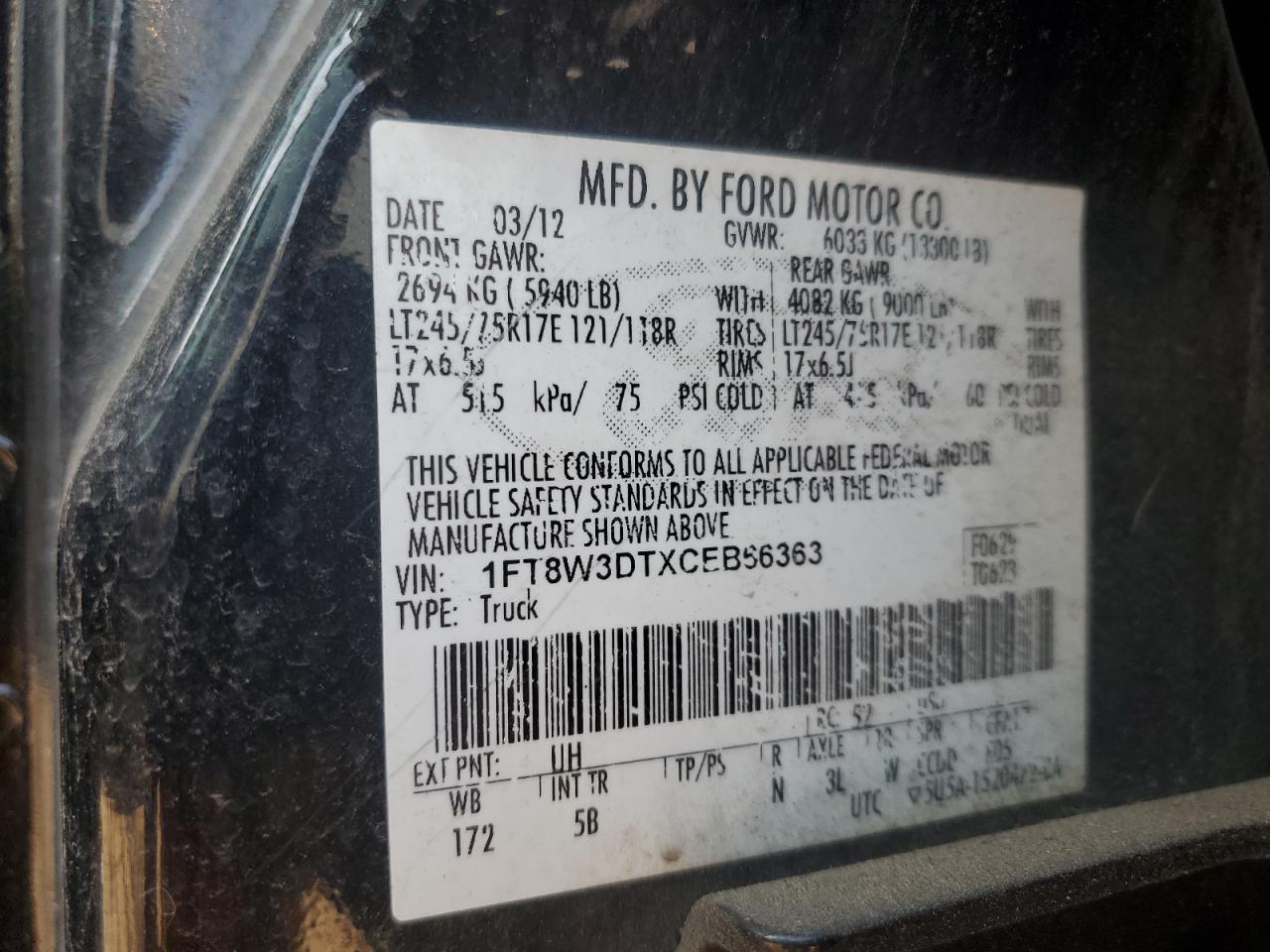 - ВИН: 1FT8W3DTXCE******