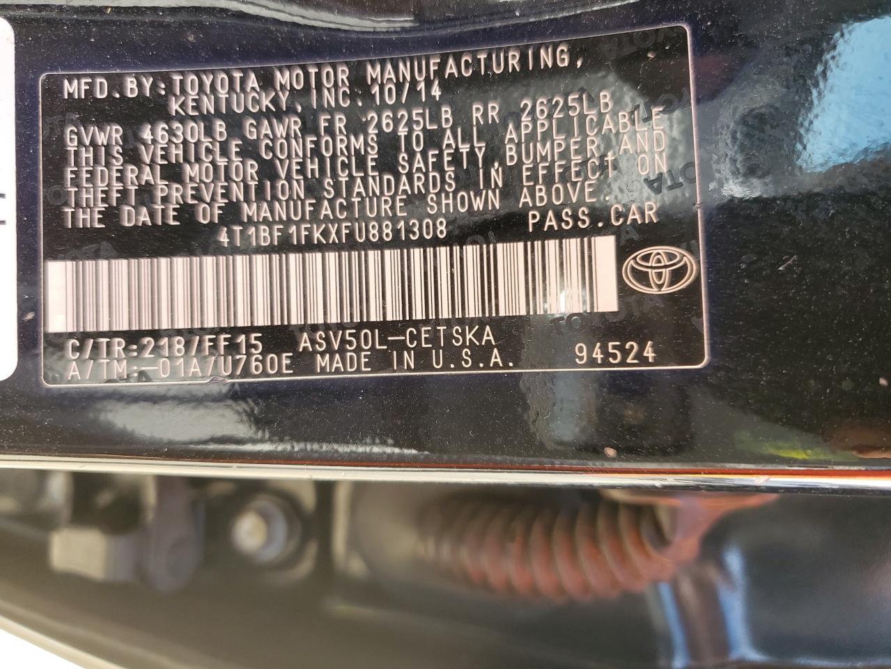 - ВИН: 4T1BF1FKXFU******