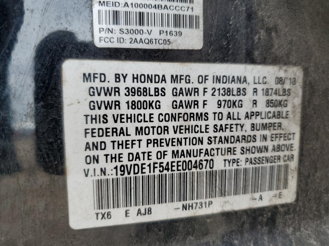 - ВИН: 19VDE1F54EE******
