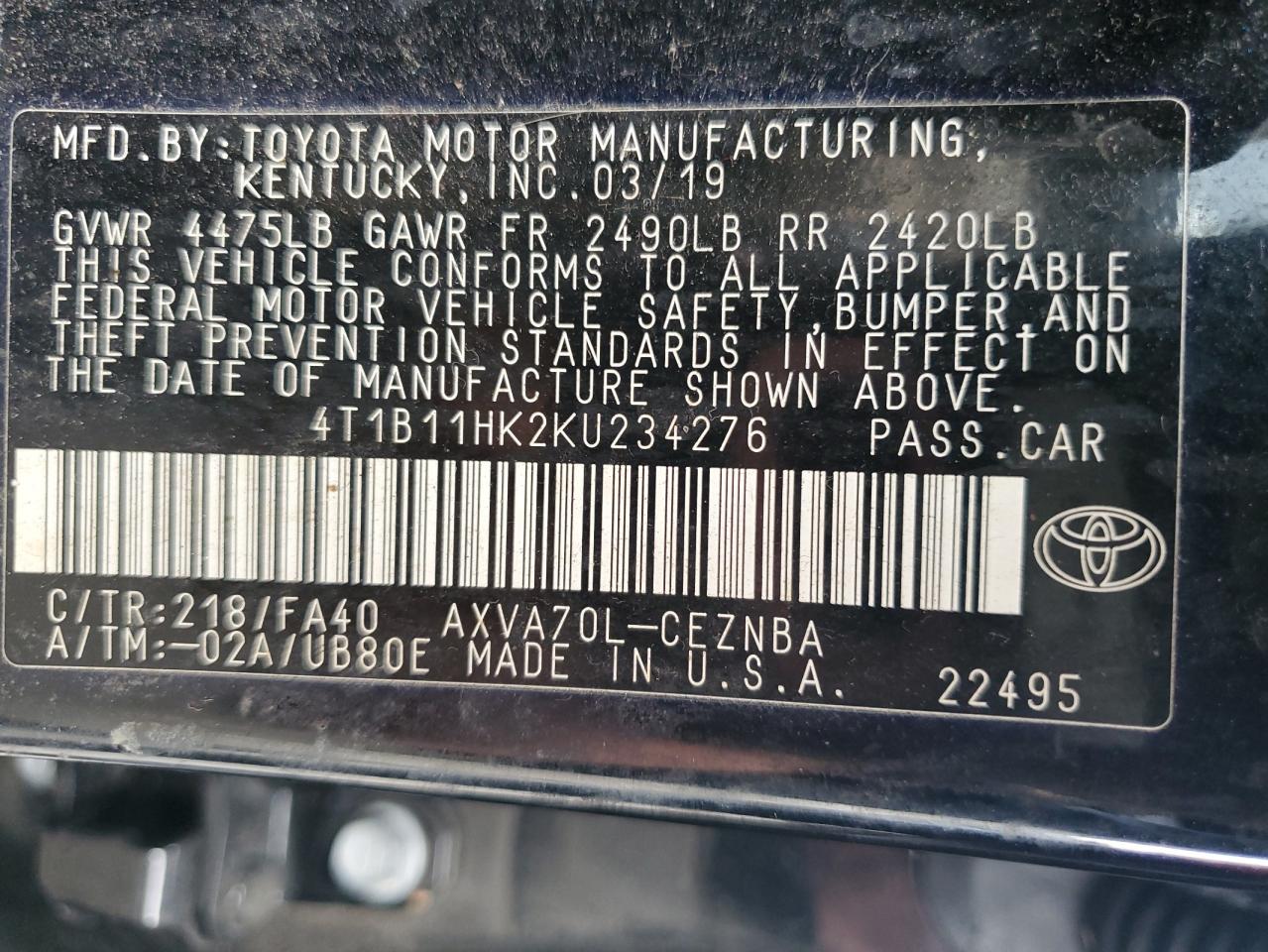 - ВИН: 4T1B11HK2KU******