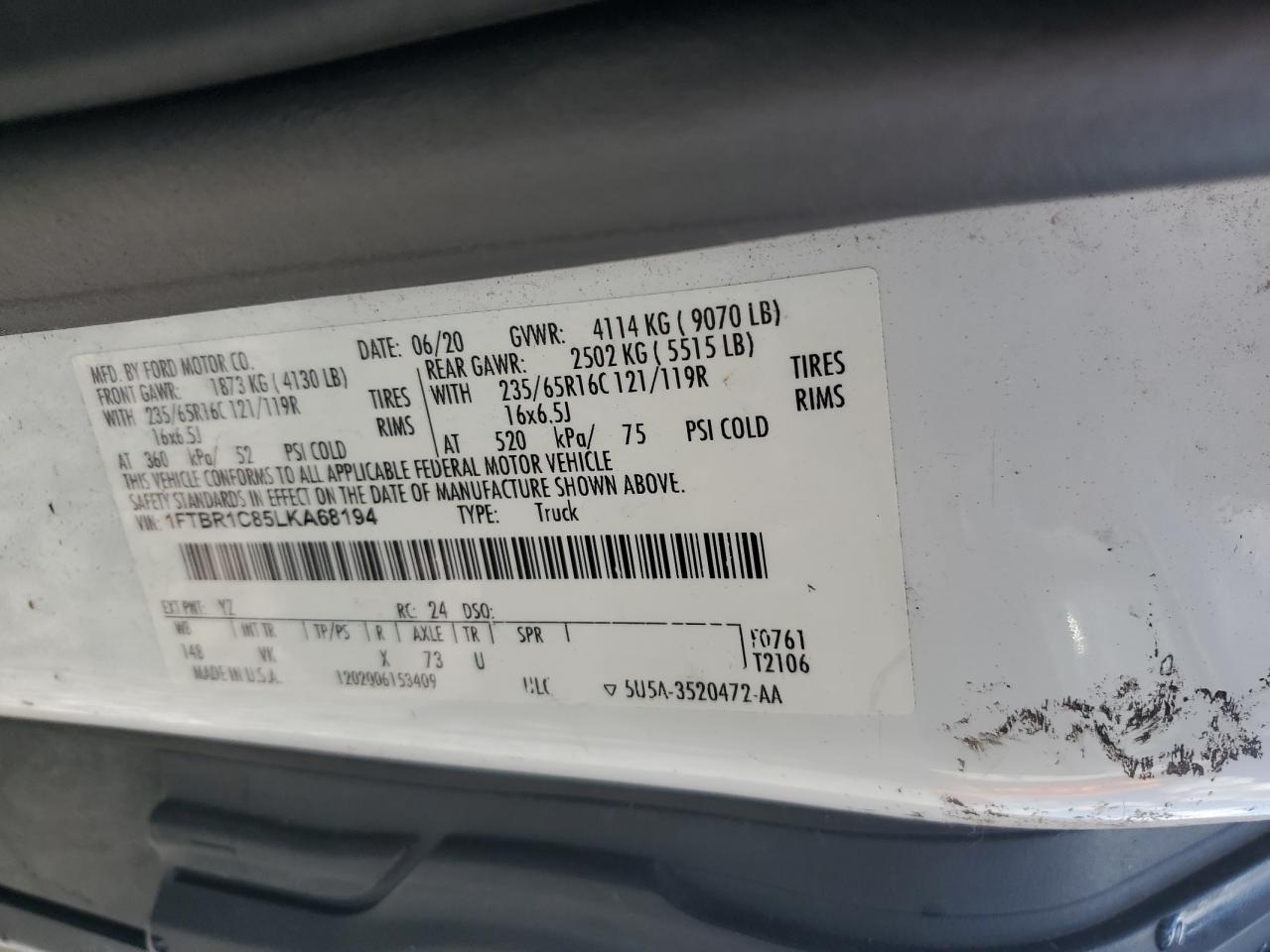 - ВИН: 1FTBR1C85LK******