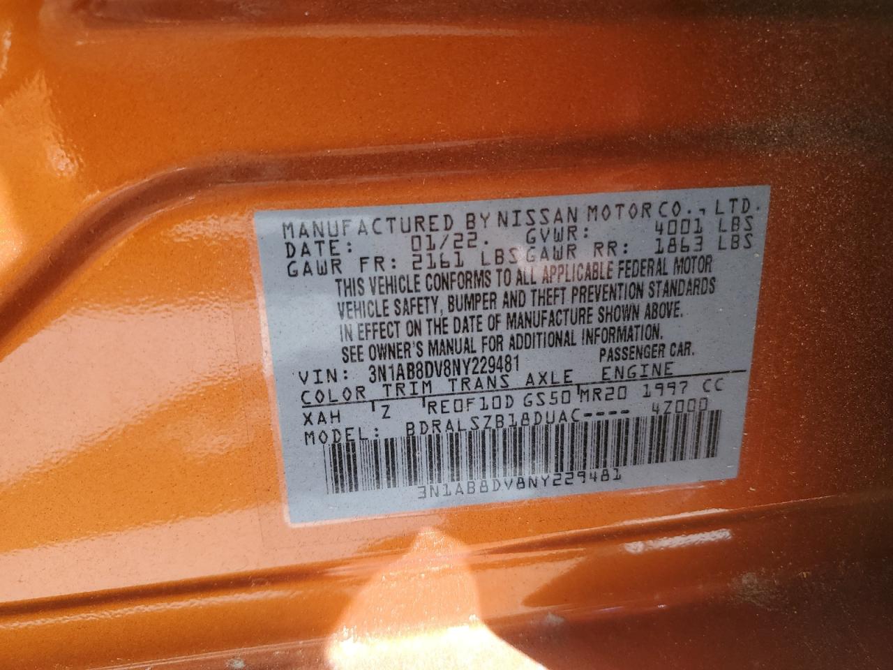 2022 NISSAN SENTRA SR из США