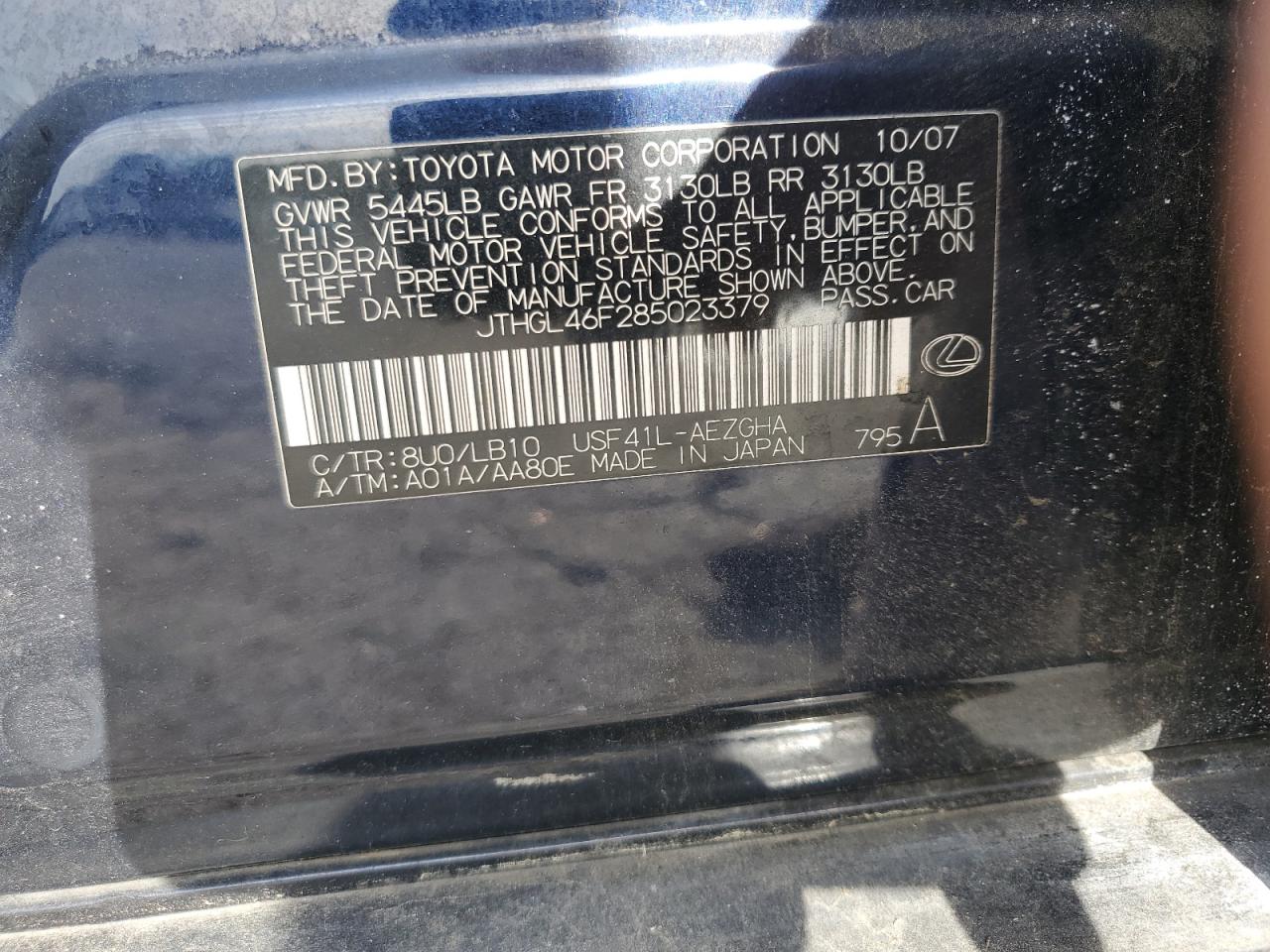 - ВИН: JTHGL46F285******