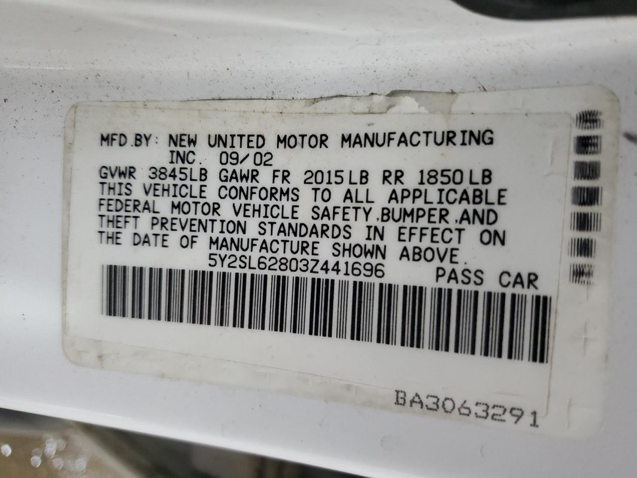 - ВИН: 5Y2SL62803Z******