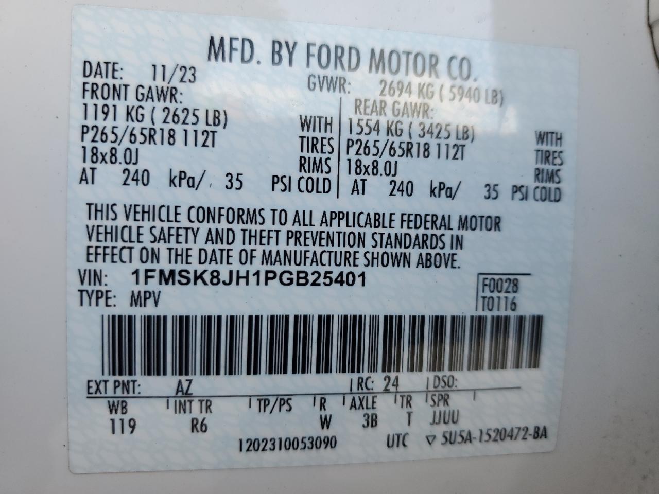- ВИН: 1FMSK8JH1PG******