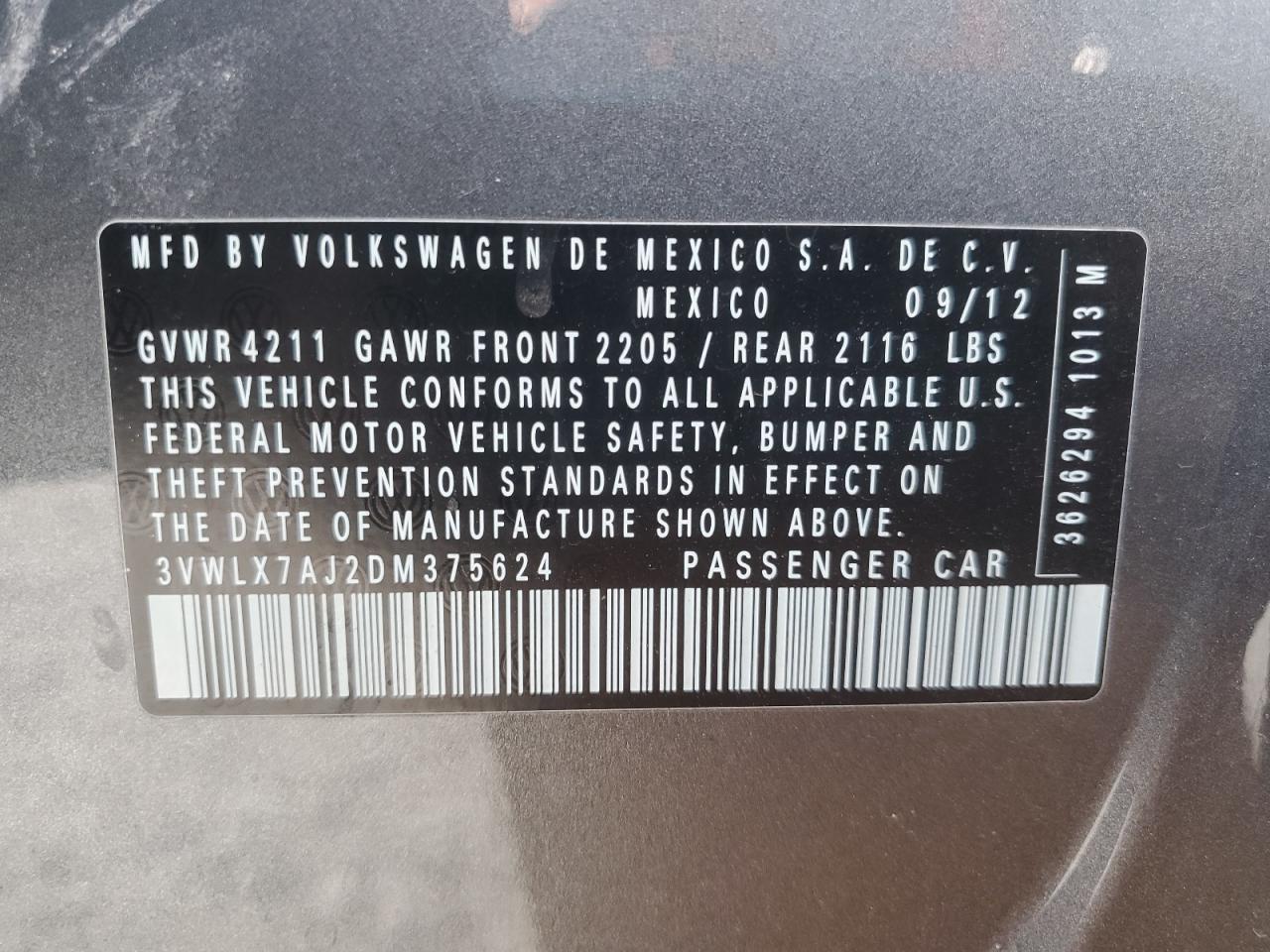 - ВИН: 3VWLX7AJ2DM******