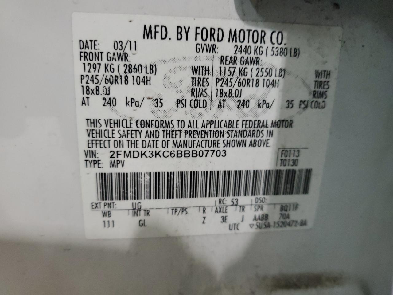 - ВИН: 2FMDK3KC6BB******